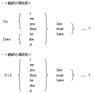 動詞の疑問形は「do」(現在形で主語が三人称単数のときは「does」)を文頭におきます。そして動詞は現在形にします。