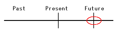| 4.2. The far future 4.2.1. The future expression of "will" "Will" as the far future does not have a cause or a plan of the event unlike the near future. That is to say, it means the speaker's thought in the spot. See the following examples. (9) a. You will feel better after this medicine. b. It will rain tomorrow. (9a) has the speaker's expectation and the cause or the plan of the event is not in it. And (9b) has the prediction. See the following figure of "will." (10) ![]() The red circle is the future event, which is similar to the near future. But it does not have the blue line which expresses the speaker's feeling. That is, it does not have the mental contact with the present.