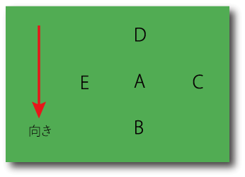 次は上の図の「A」を中心にして、位置をあらわした例です。