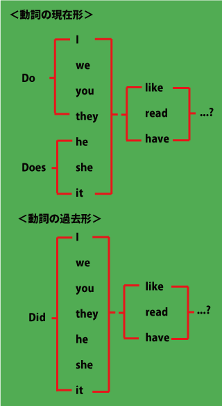 動詞の疑問形は「do」(現在形で主語が三人称単数のときは「does」)を文頭におきます。