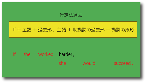 たとえば上の例でも If she worked harder, she would succeed. は、彼女は実際に一生懸命働いてはいないことを意味しています。