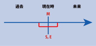 現在進行形の時間表示では、漠然とした時間の枠が現在時を中心として設けられているにすぎない。